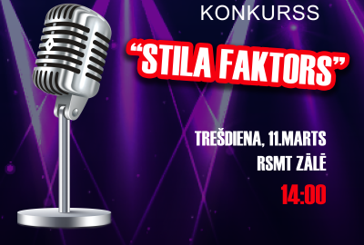 2026. gada 11. martā pl.14.00 RSMT aktu zālē norisināsies vokālais konkurss “Stila Faktors”. Piesakies, piedalies un nāc ar līdzjutēju komandu!...