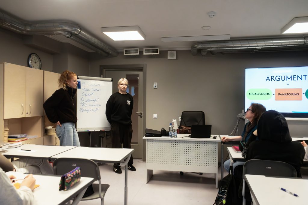 Nodarbību laikā tehnikuma audzēkņi attīstīja prasmes argumentēt, aizstāvēt viedokli un ieklausīties citos, kā arī loģiski izklāstīt savas domas un aizstāvēt pozīciju.